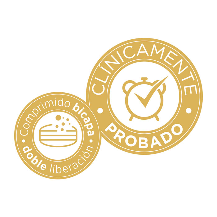 • Segunda capa (liberación prolongada): Libera de forma gradual el resto de los componentes como el Complejo Gabaglicin 6®, valeriana, amapola de california, pasiflora y vitamina B3, que trabajan para mantener el sueño natural, potenciar la relajación y mejorar la calidad del descanso a lo largo de la noche.
