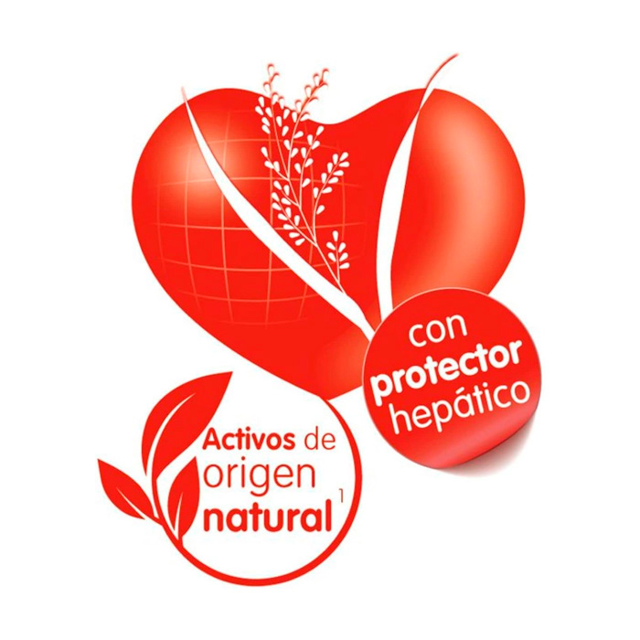 Por 2 comprimidos: 300 mg Gama Orizanol, 150 mg ES de Abedul, 100 mg ES de Cardo Mariano (80 mg Silimarina), 96,68 mg Levadura roja de arroz (2,9 mg monacolinas), 50mg ES de Olivo (10 mg Hidroxitirosol), 20 mg Coenzima Q10, 16,6 mg Policosanol, 1,1 mg (100% VRN*) Vitamina B1 y 0,04 mg Cromo (100% VRN*).