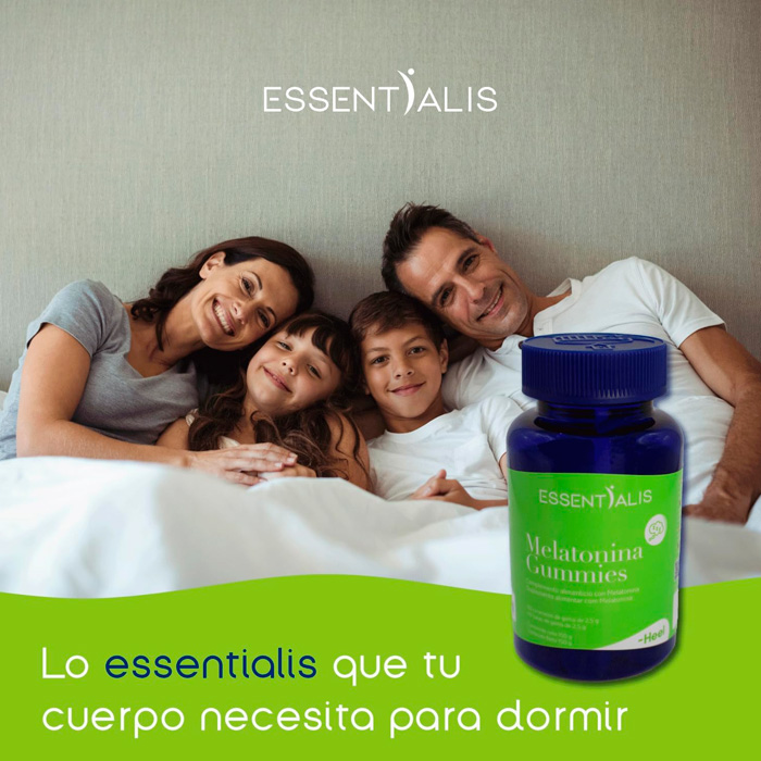 Essentialis Melatonina Gummies es un complemento alimenticio que ayuda a conciliar el sueño y a favorecer el descanso reparador. Su fórmula contiene melatonina, una hormona que el cuerpo produce de forma natural y que ayuda a regular el ritmo sueño-vigilia.