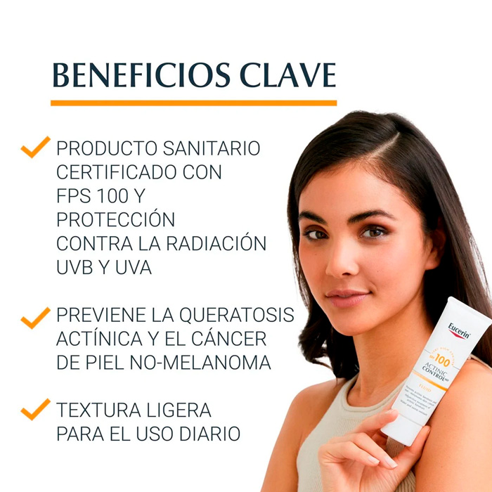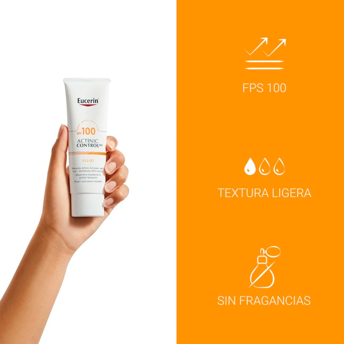 Eucerin Actinic Control MD Fluido SPF100 es un producto sanitario con un factor de protección solar (FPS) de 100 que está específicamente diseñado para prevenir la queratosis actínica y el cáncer de piel no melanoma.