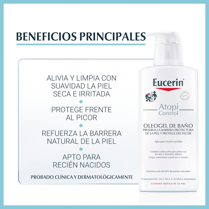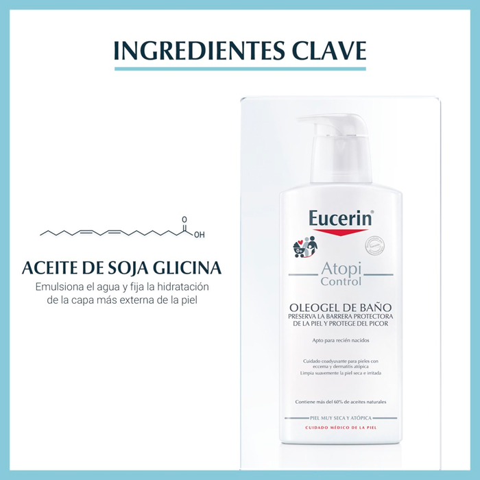 Eucerin AtopiControl Oleogel de Baño es un producto dermatológico formulado específicamente para abordar las necesidades de la piel atópica.