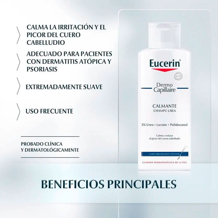 Eucerin Dermocapillaire Champú Urea Duplo es el tratamiento de higiene capilar ideal para las personas que sufren de cuero cabelludo seco, extremadamente tirante y con picor persistente.