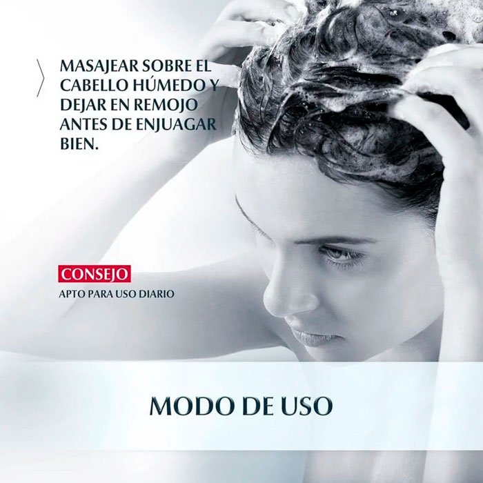 Con el uso continuado de este formato Duplo (2 x 250ml), el cuero cabelludo recupera su equilibrio, el picor se calma y el cabello luce un brillo saludable, recuperando su flexibilidad y suavidad naturales.