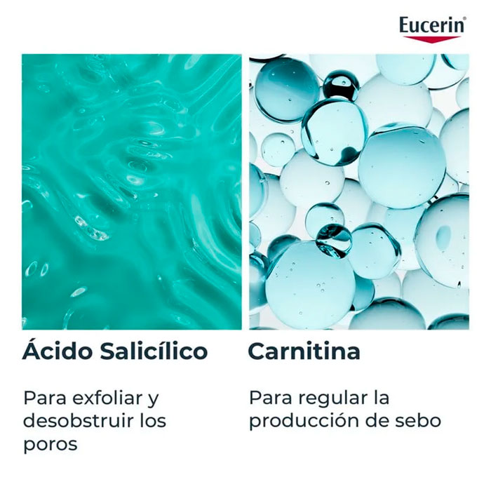 Su fórmula clínica avanzada combina Carnitina, que regula la producción de sebo, con Ácido Salicílico, que ayuda a purificar la piel y desobstruir los poros.