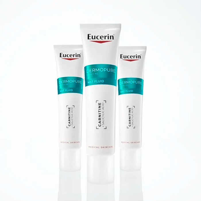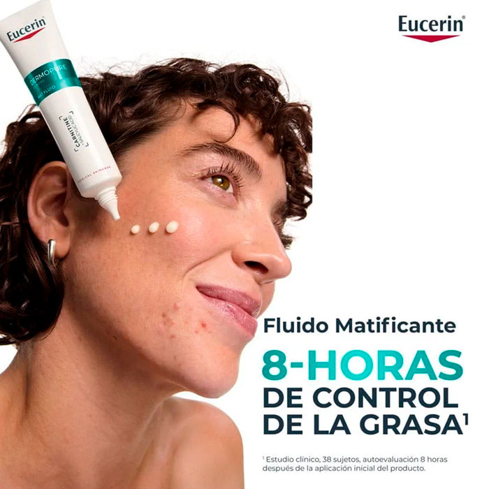 Con Eucerin DermoPure Clinical Mat Fluid consigue un efecto mate duradero y controla el exceso de grasa.