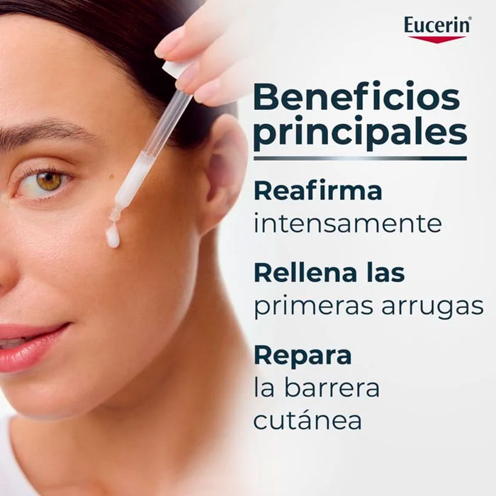 El Sérum Reafirmante Eucerin Hyaluron Filler +3x Effect es un tratamiento antiedad de alto rendimiento con una textura ultraligera y sin perfume, diseñado para combatir la pérdida de firmeza, la deshidratación y las arrugas visibles.