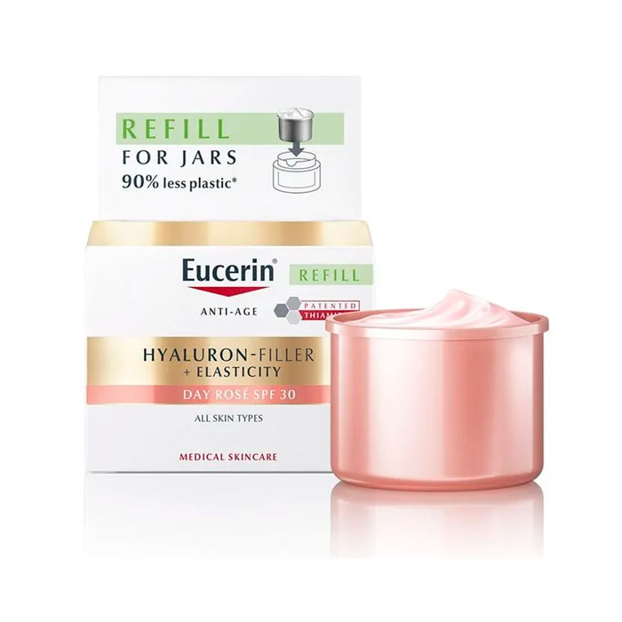 Con la Recarga Eucerin Hyaluron-Filler + Elasticity Crema de Día Rosé Fps30 consigue una piel visiblemente más joven y un resplandor saludable.