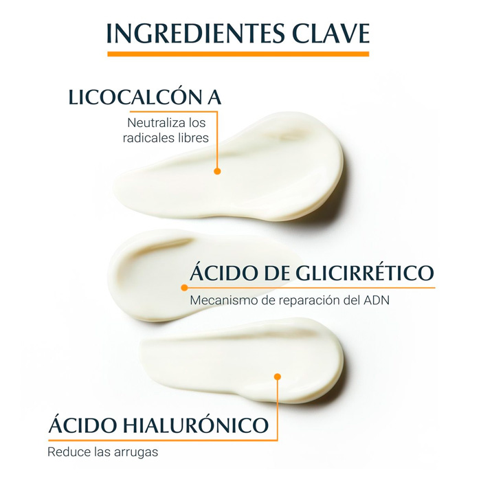 Este protector solar antiedad también contiene ácido glicirretínico, que estimula el mecanismo de reparación del ADN de la piel, contribuyendo así a mantenerla sana y protegida frente a los daños solares.