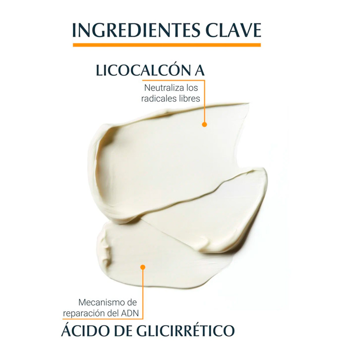 Este protector solar facial contiene licocalcón A, un ingrediente que ayuda a neutralizar los radicales libres generados por la exposición a la luz UV y a la luz visible de alta energía (HEVL), contribuyendo así a prevenir el daño cutáneo inducido por el sol.