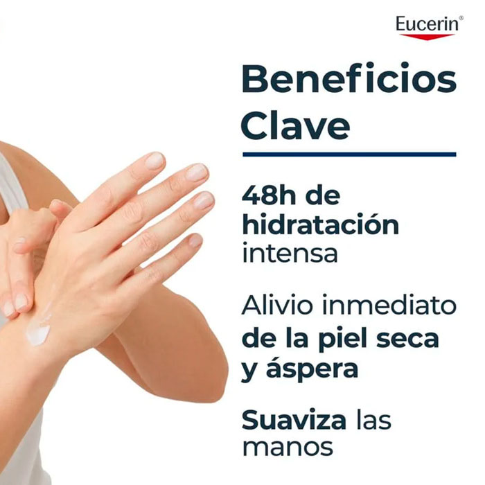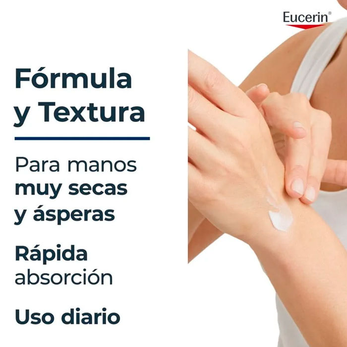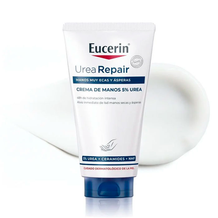 Eucerin UreaRepair Crema de Manos 5% Urea Duplo es el tratamiento esencial para el cuidado diario de las manos que sufren sequedad extrema y aspereza.