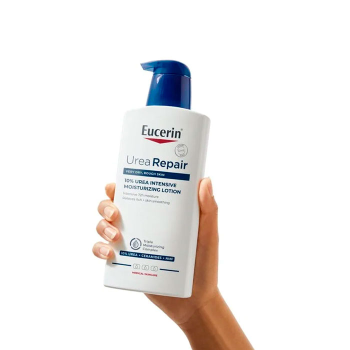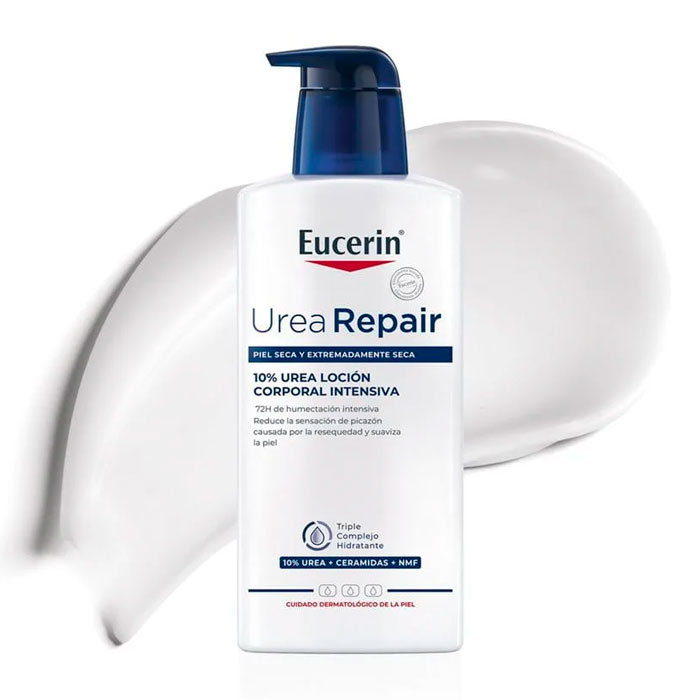 Eucerin UreaRepair Loción Hidratante Intensiva 10% Urea es una solución dermatológica avanzada diseñada para restaurar la barrera cutánea de las pieles más secas y ásperas.