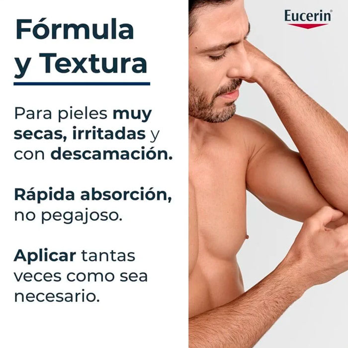 Es un tratamiento sin perfume, con una textura de emulsión que se absorbe rápidamente y es apto para pieles maduras o personas afectadas por diabetes, psoriasis y queratosis pilaris.