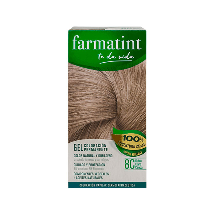 Farmatint 8c Gel Rubio Claro Ceniza es un tinte capilar de coloración permanente, que aporta un color natural y duradero.