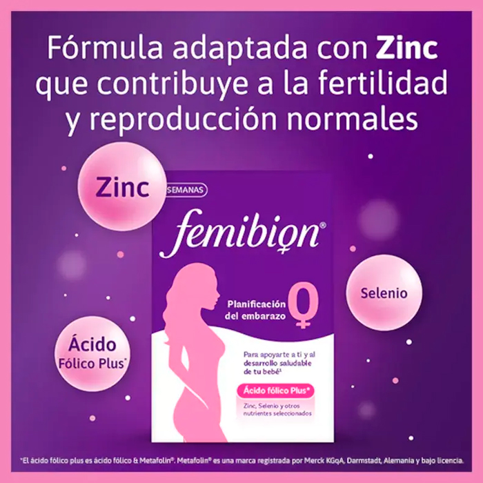 Ácido fólico Plus: Vitamina esencial para el desarrollo del tubo neural del bebé, lo que ayuda a prevenir defectos del tubo neural como la espina bífida. Femibion 0 contiene 400 microgramos de ácido fólico, que es la dosis recomendada por la mayoría de las organizaciones de salud para mujeres que están intentando concebir.
