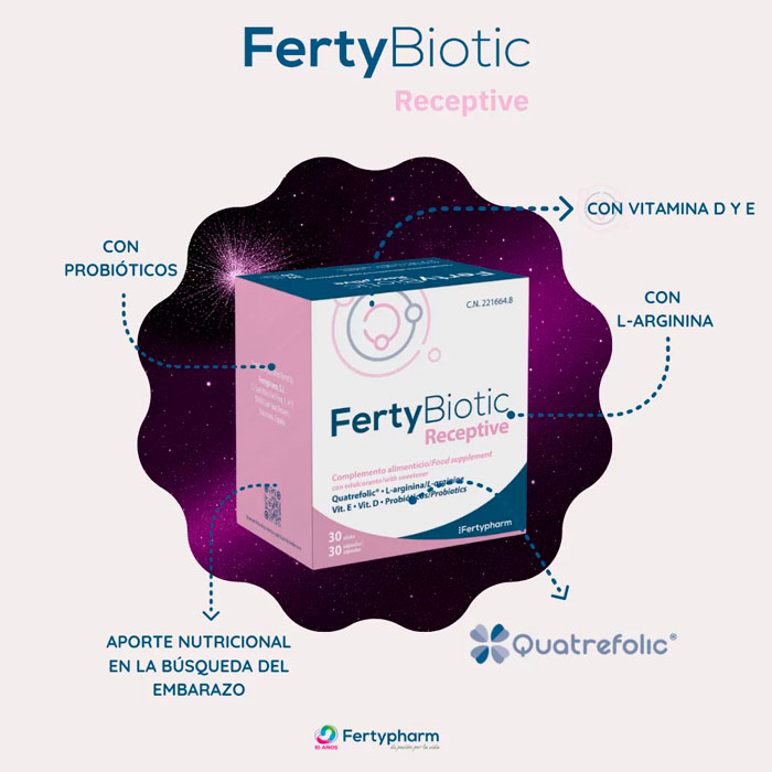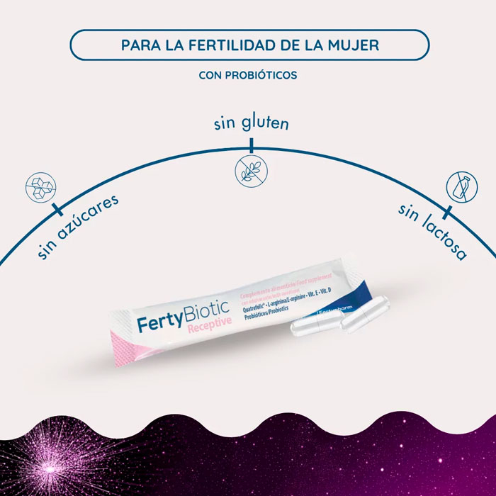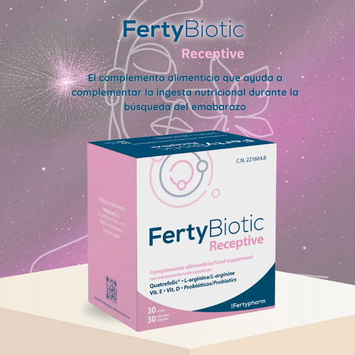 Fertybiotic Receptive es un complemento alimenticio diseñado para apoyar la preparación endometrial y el bienestar reproductivo.