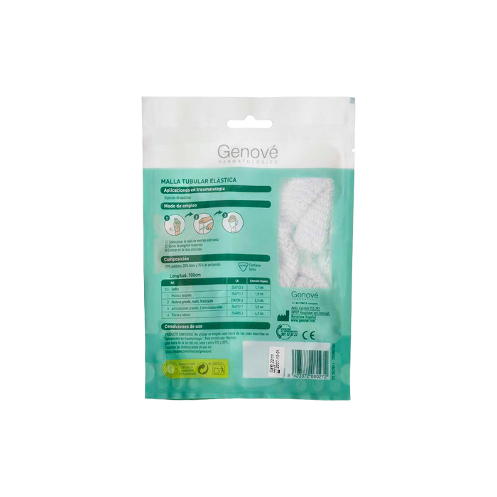 La Malla Tubular Elástica Muñeca Grande, Mano, Brazo y Pie Genocure está indicada para la fijación de apósitos sin adhesivos, permitiendo así mantener la herida aireada.