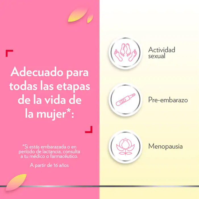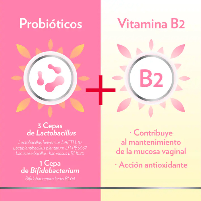 Esta fórmula única combina probióticos y vitamina B2 para ayudar a mantener el equilibrio de la microbiota vaginal en todas las etapas de la vida de la mujer.