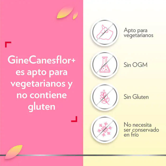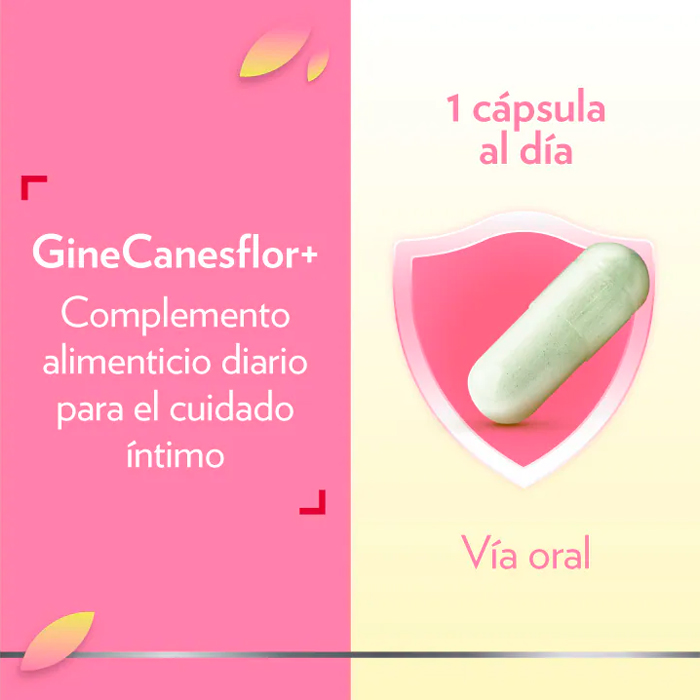 GineCanesflor+ es un complemento alimenticio especialmente formulado para contribuir al bienestar y la protección íntima de la mujer.