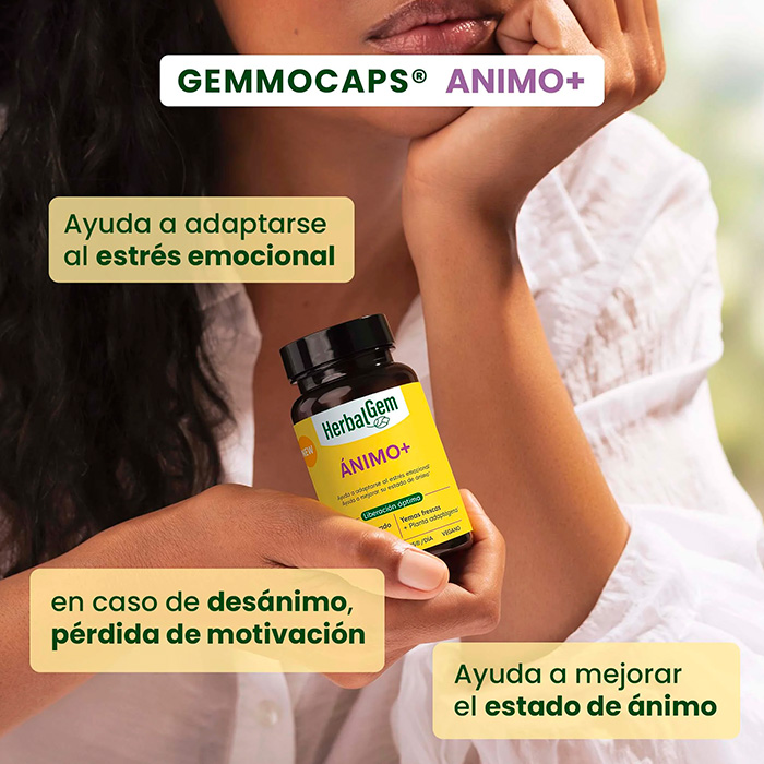 Herbalgem Ánimo+ es una fórmula diseñada para ayudar a restaurar el equilibrio emocional cuando el estrés afecta la moral, provocando disminución de la motivación, cambios de humor o melancolía.