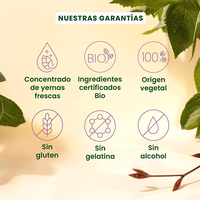 Los yemas frescos son naturalmente concentrados en polifenoles, proporcionando beneficios antioxidantes.