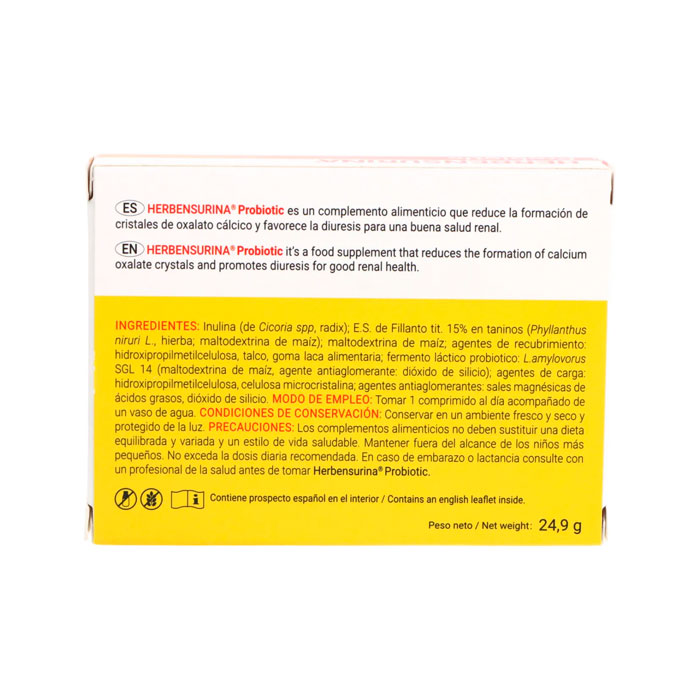 Herbensurina Probiotic es una fórmula exclusiva diseñada específicamente para la prevención de la formación de cálculos renales y el mantenimiento de la salud renal.