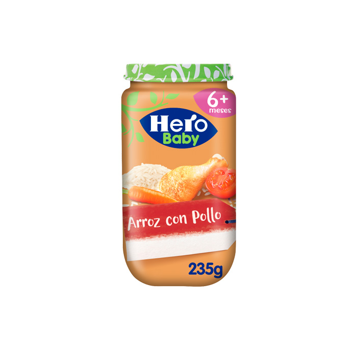 Hero Baby Tarrito Arroz con Pollo es una deliciosa y nutritiva opción para bebés a partir de 6 meses. Está elaborada con ingredientes 100% naturales, de la mejor calidad y sin azúcares añadidos.