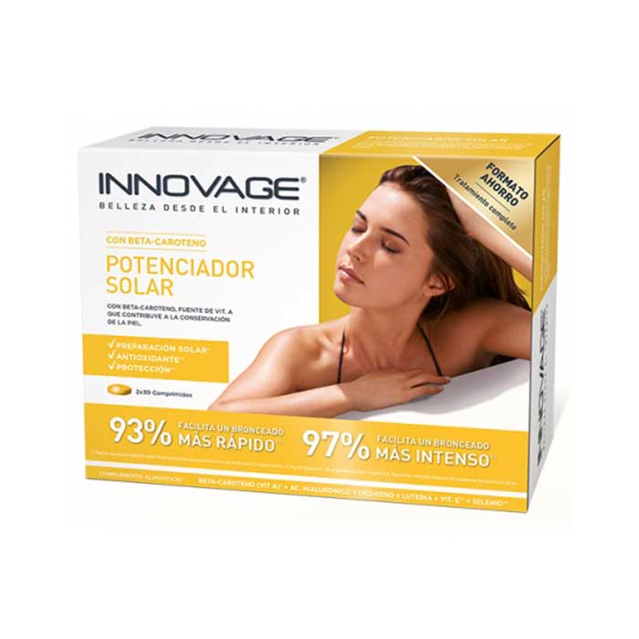 Innovage Potenciador Solar es un complemento alimenticio que favorece un bronceado intenso y uniforme.