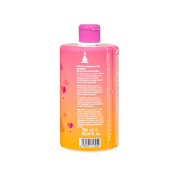 Su fórmula avanzada incorpora Extracto de Rosa Mosqueta, reconocido por sus propiedades regeneradoras y suavizantes, junto con Glicerina y agentes acondicionadores de alta calidad.