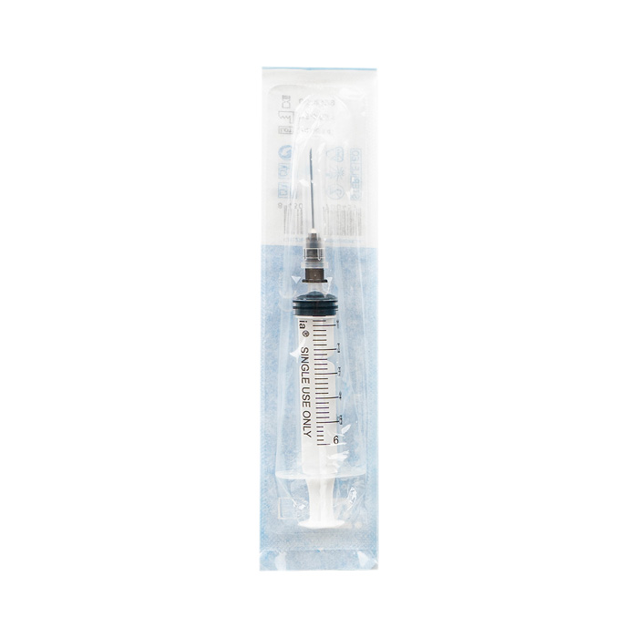 Conexión segura: Cono luer concéntrico con aguja hipodérmica 22G (0,70 x 30 mm), codificada por color según estándar.