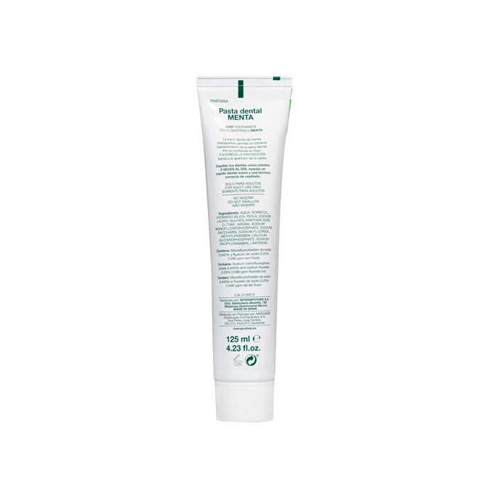 Interapothek Pasta Dental Menta es una pasta dentífrica con flúor que te ayuda a mantener una correcta higiene bucal y a prevenir la aparición de caries.