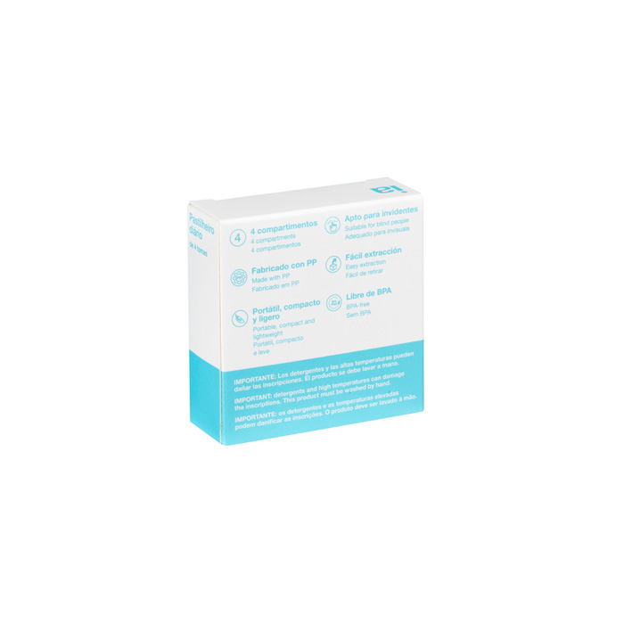 Organización sencilla: Sus 4 compartimentos te permiten distribuir tus medicamentos de forma clara y sencilla, según tus necesidades.