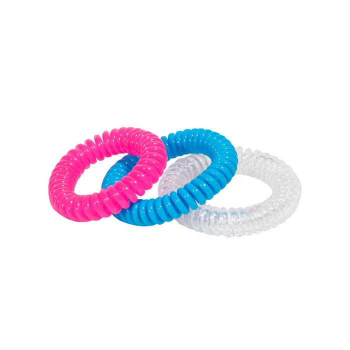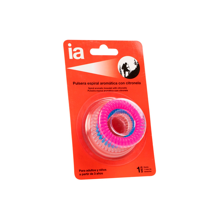 Diseñada con una espiral de plástico ajustable y impregnada en aceite esencial de citronela, esta pulsera ofrece una protección continua y cómoda.