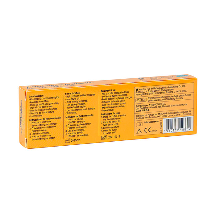 El Termómetro Digital XL de Interapothek es un dispositivo de medición que proporciona la temperatura corporal con alta precisión y de manera muy rápida.