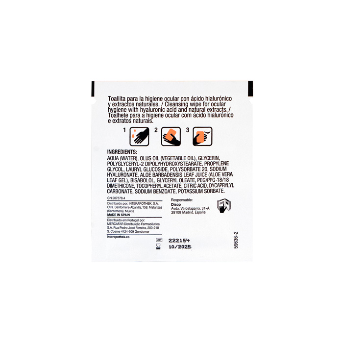 2. Abra el sobre y retire una toallita Interapothek Toallitas Oftálmicas 20 Unidades