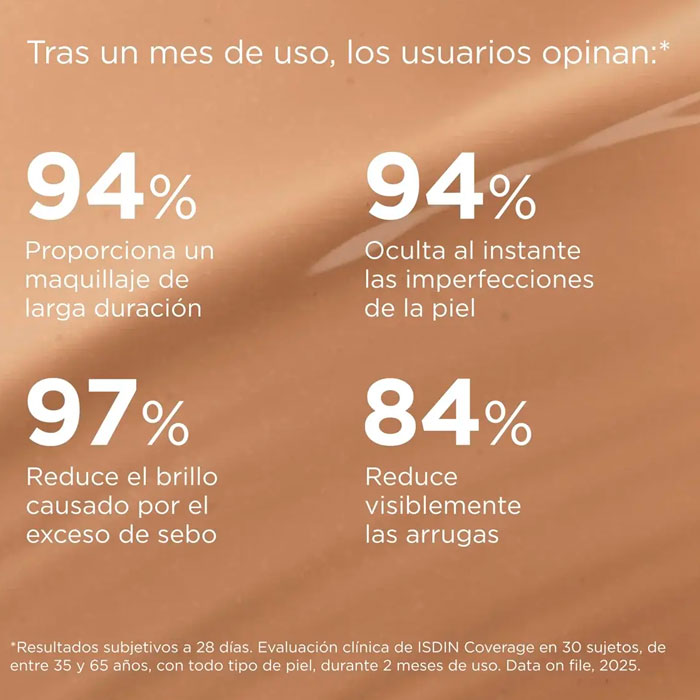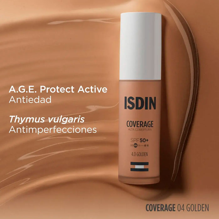 Con Isdin Coverage SPF 50+ 4.0 Golden consigue un rostro visiblemente más joven y un tono bronceado natural.
