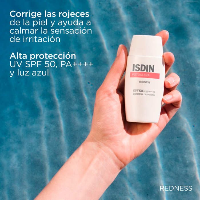 Isdin Fotoultra Redness Spf50 es un fotoprotector facial que corrige y ayuda a prevenir las rojeces de la piel y aporta una alta protección contra los rayos UVB/UVA y la luz visible.