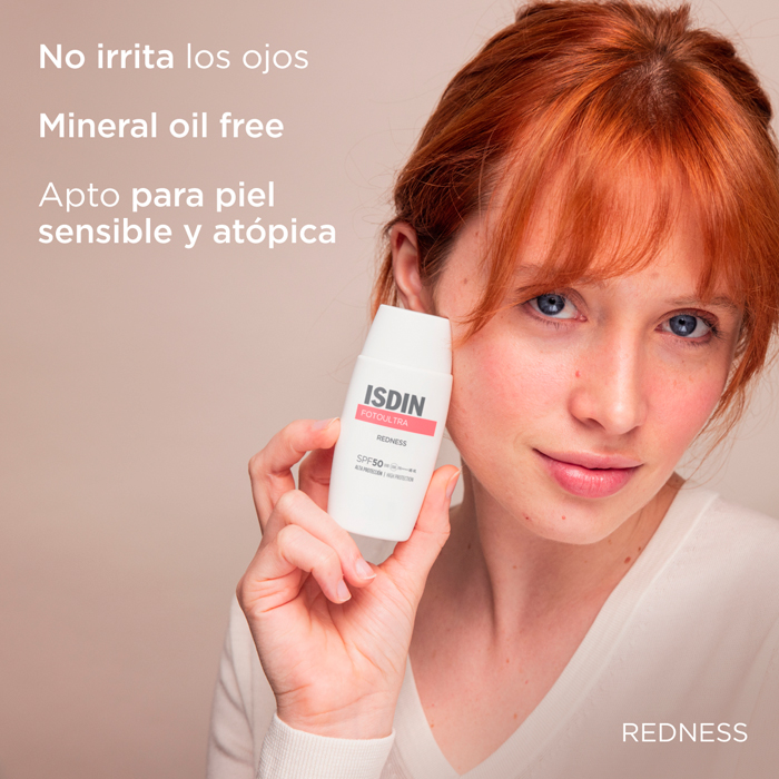 Isdin Fotoultra Redness está especialmente indicado para personas de piel sensible y reactiva con tendencia al enrojecimiento.