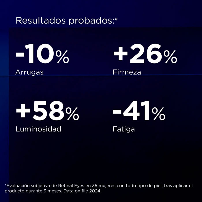Esta potente fórmula repara la piel de forma suave y trabaja para corregir los cinco signos clave del envejecimiento: arrugas, bolsas y ojeras, pérdida de firmeza, falta de luminosidad y signos de fatiga.