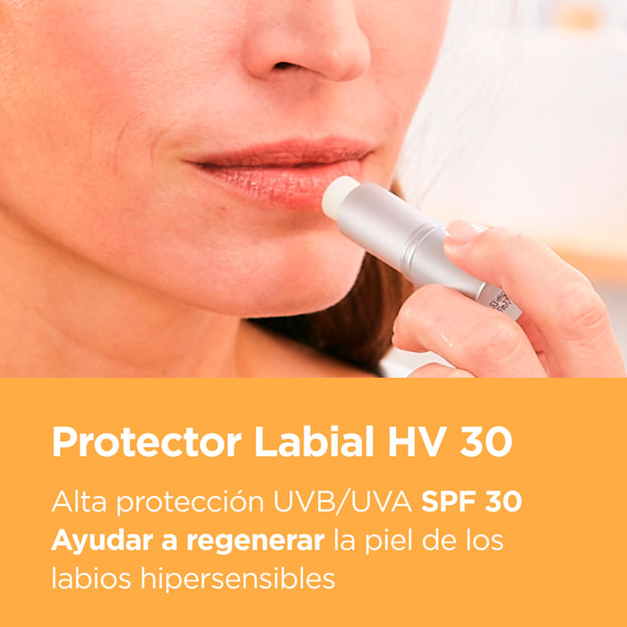 El Protector Labial Hv Spf30 Isdin ofrece protección alta para labios hipersensibles al sol.