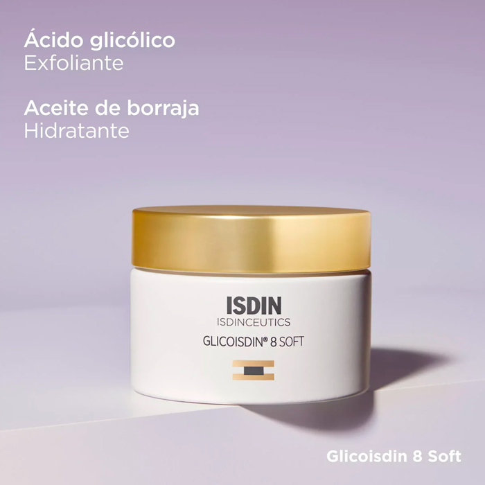 Isdinceutics Glicoisdin 8 Soft es una crema exfoliante facial formulada específicamente para pieles secas.