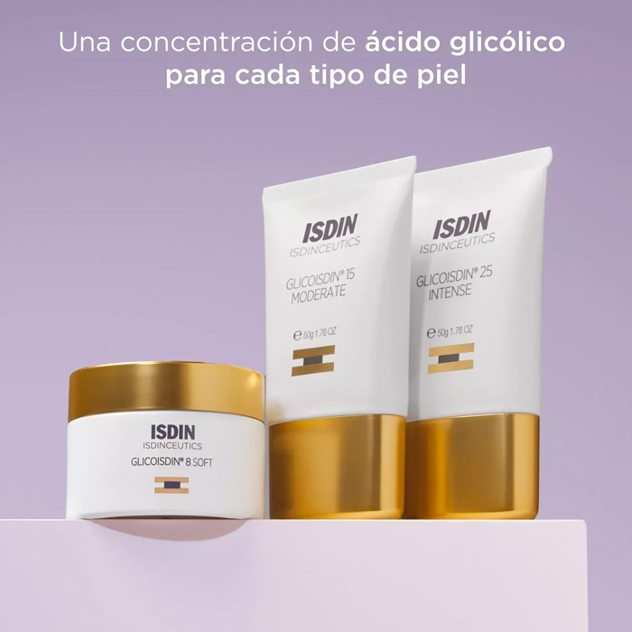 Aplica Isdinceutics Glicoisdin 8 Soft 50g sobre la piel limpia realizando un suave masaje hasta su total absorción. Te recomendamos que empieces por concentraciones bajas de ácido glicólico e incrementes la concentración y frecuencia de uso a medida que tu piel genere mayor tolerancia. Durante la primera semana de uso, aplícala cada dos noches, y todas las noches en las siguientes semanas. Utiliza Glicoisdin 8 Soft preferentemente en tu rutina de noche y no olvides usar fotoprotección con SPF alto durante el día.