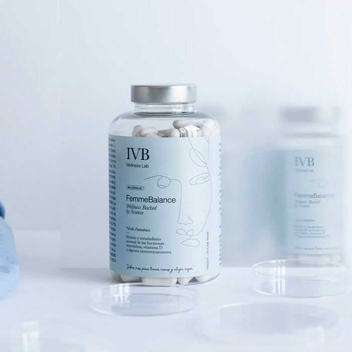 Ivb Wellness Femmebalance es una fórmula integral diseñada para apoyar el equilibrio hormonal y el bienestar fisiológico de la mujer.
