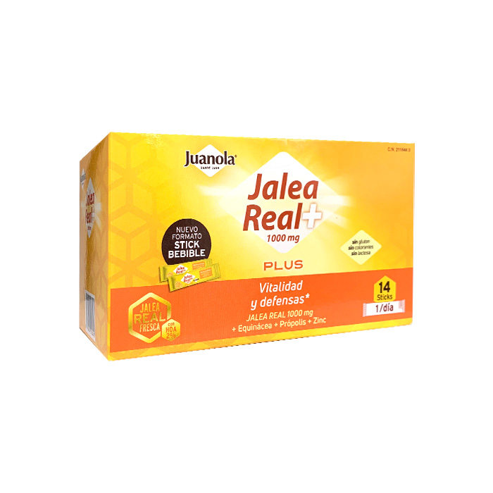 Juanola Jalea Real Plus Sticks es un complemento alimenticio con jalea real fresca que aumenta la vitalidad y defensas. Su fórmula contribuye al buen y normal funcionamiento del sistema inmunitario.