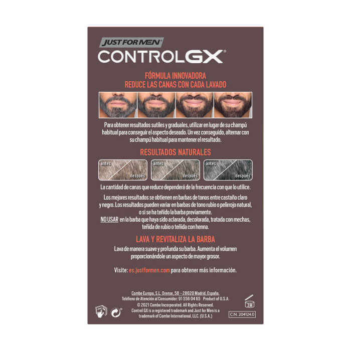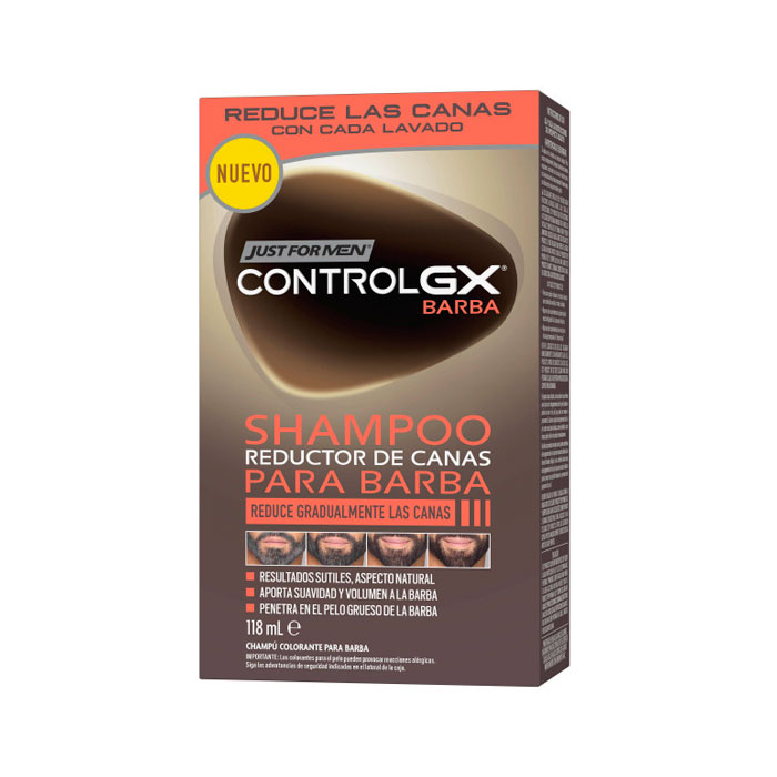 El Champú Reductor de Canas Para Barba Just For Men Control Gx reduce gradualmente las canas de la barba, aportando suavidad y volumen.