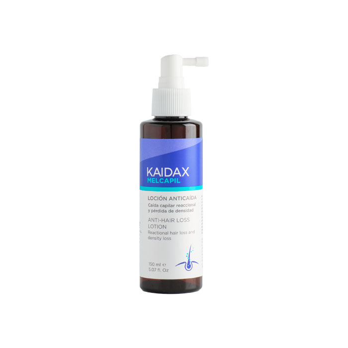 Kaidax Melcapil Loción Anticaída es un tratamiento intensivo de 150ml diseñado para combatir los procesos de caída capilar reaccional (no ligada a andrógenos) tanto en hombres como mujeres.