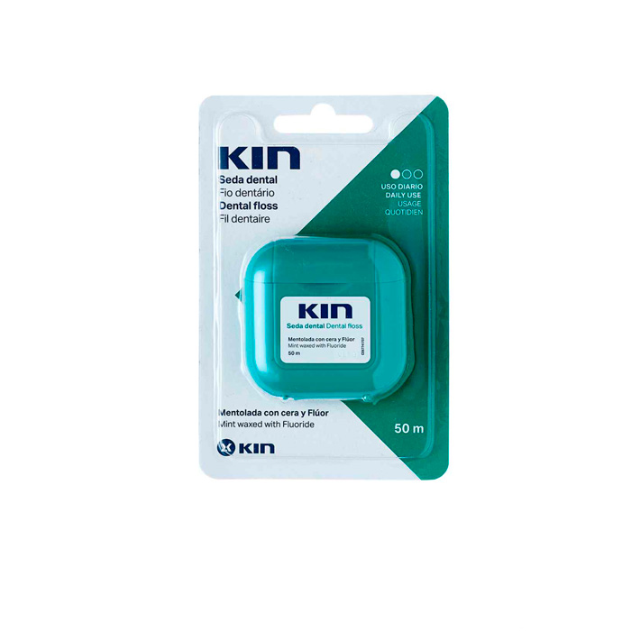 La Seda Dental Kin limpia los espacios interdentales y subgingivales a los que no llega el cepillo de dientes y ayuda a eliminar los restos de alimentos y la placa bacteriana. Gracias a su contenido en flúor también refuerza el esmalte, y su sabor mentolado deja una agradable sensación de frescura en la boca.