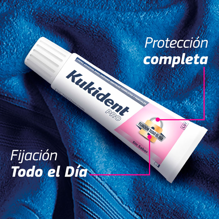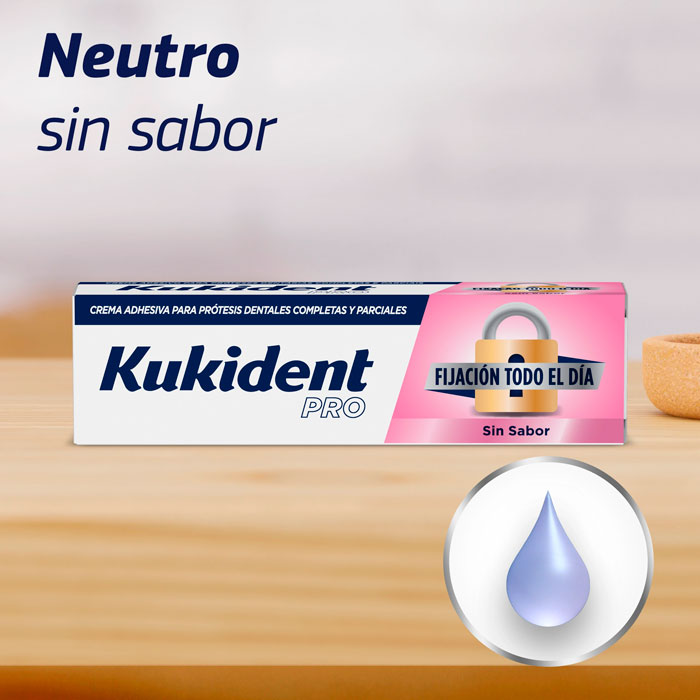 Kukident Pro Fijación Todo el Día Sin Sabor es la solución ideal si buscas olvidarte de tu prótesis dental a lo largo de la jornada.