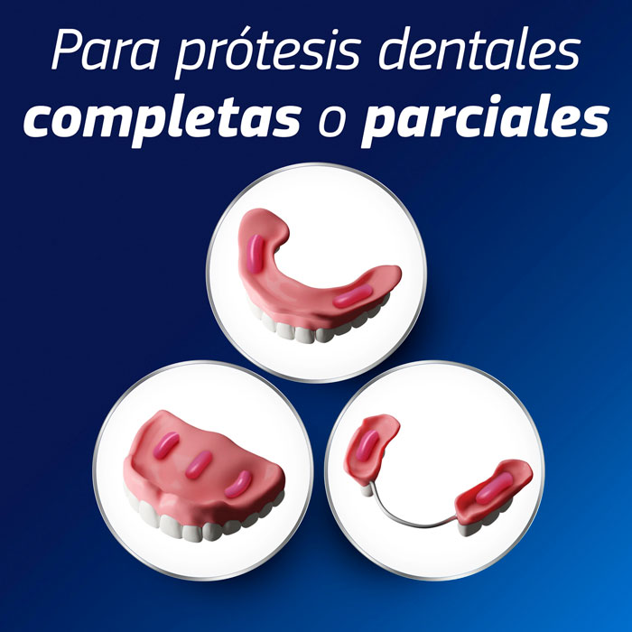 Su fórmula crea un cojín protector entre las encías y la prótesis.