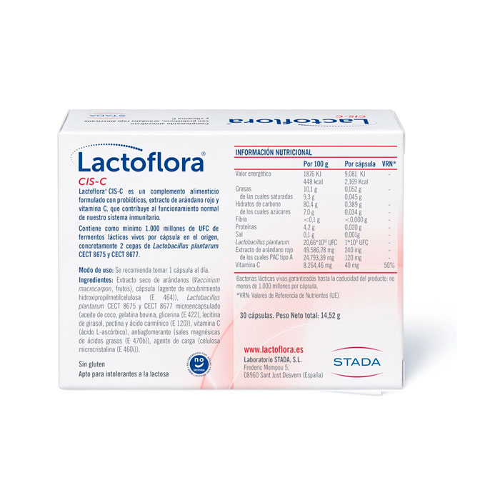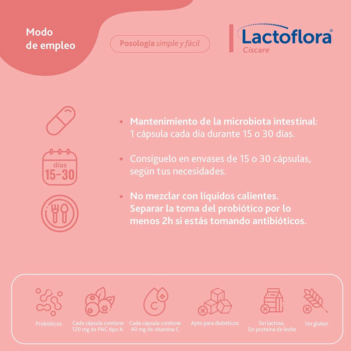 Tomar 1 cápsula al día de Lactoflora Cis-C 30 Cápsulas durante 15 días o 30 días.