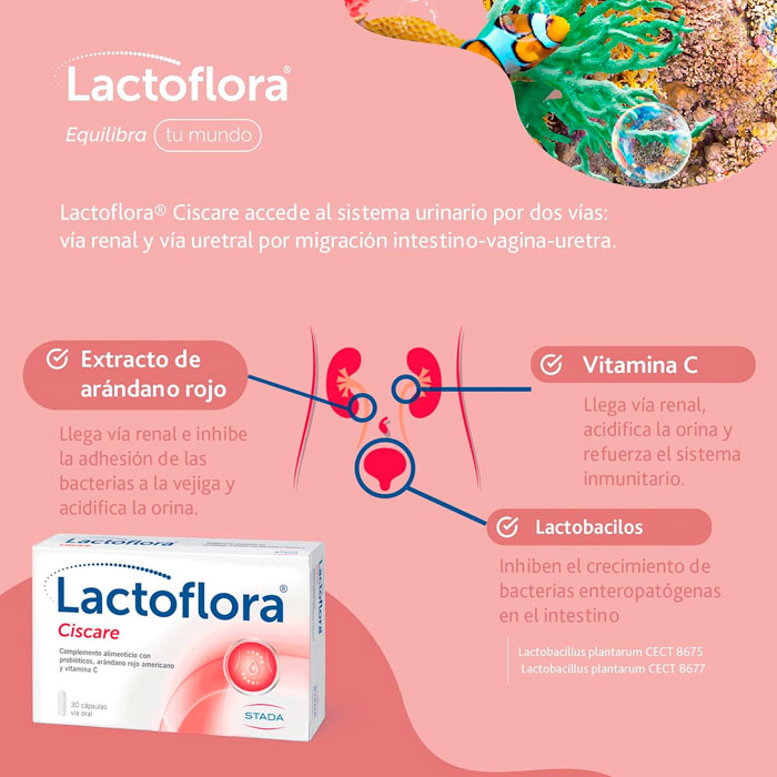 Lactoflora® Cis-C es un complemento alimenticio específicamente formulado para aquellas personas que sufren molestias urinarias recurrentes o que buscan mantener la salud de su sistema excretor.